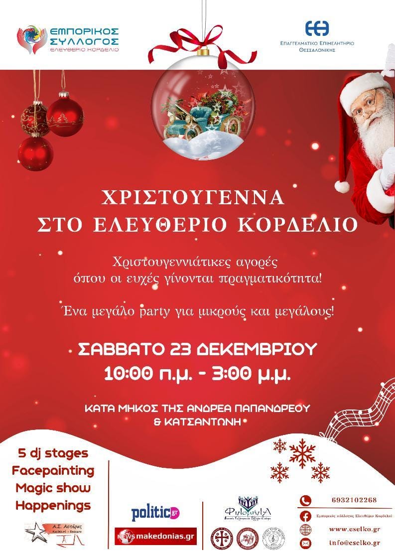 Μια μεγάλη Χριστουγεννιάτικη γιορτή για μικρούς και μεγάλους διοργάνωσε και φέτος ο Εμπορικός Σύλλογος Ελευθερίου Κορδελιού σε συνεργασία με το Επαγγελματικό Επιμελητήριο Θεσσαλονίκης.